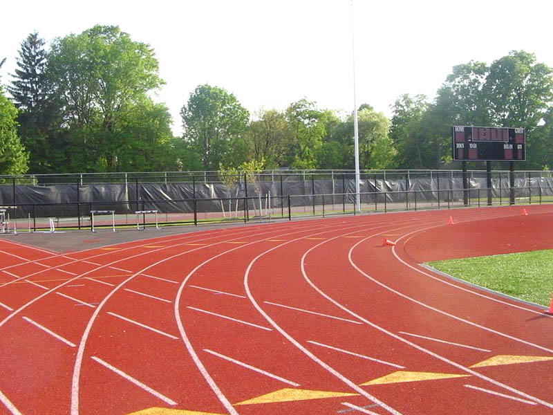 外型:無裂縫或層次狀況;地面防滑層與底膠層黏合堅固、勻稱;接縫處豎直、無顯著凸凹狀況;表層顏色勻稱、耐久度。標示線:標示線應清楚、不返光,無顯著虛邊,與整體面層黏合堅固。各標示線部位距終點間的間距長短不允許出現負差,其正差應低于1/10000。塑膠跑道平面度達標率不小于85%。用以賽事的塑膠跑道的薄厚不小于13mm,別的非賽事用輔助總面積薄厚可由甲乙雙方商談。塑膠跑道的橫著傾斜度不超1:100,豎向傾斜度不超1:1000。